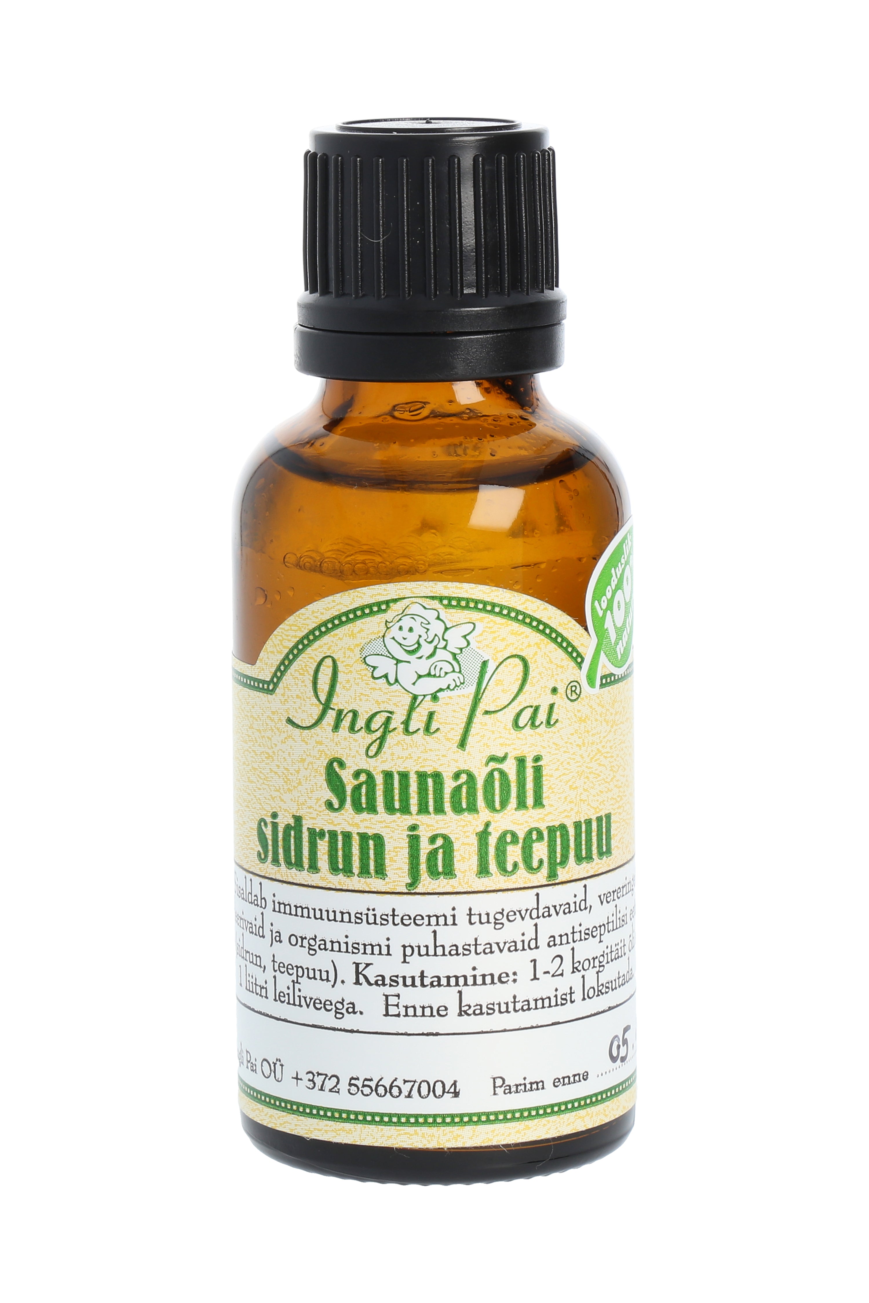 Saunaõli sidrun ja teepuu sisaldab immuunsüsteemi tugevdavaid, vereringet stimuleerivaid ja organismi puhastavaid antiseptilisi eeterlikke õlisid (sidrun, teepuu). Pakend: 30 ml. tume klaaspudel.