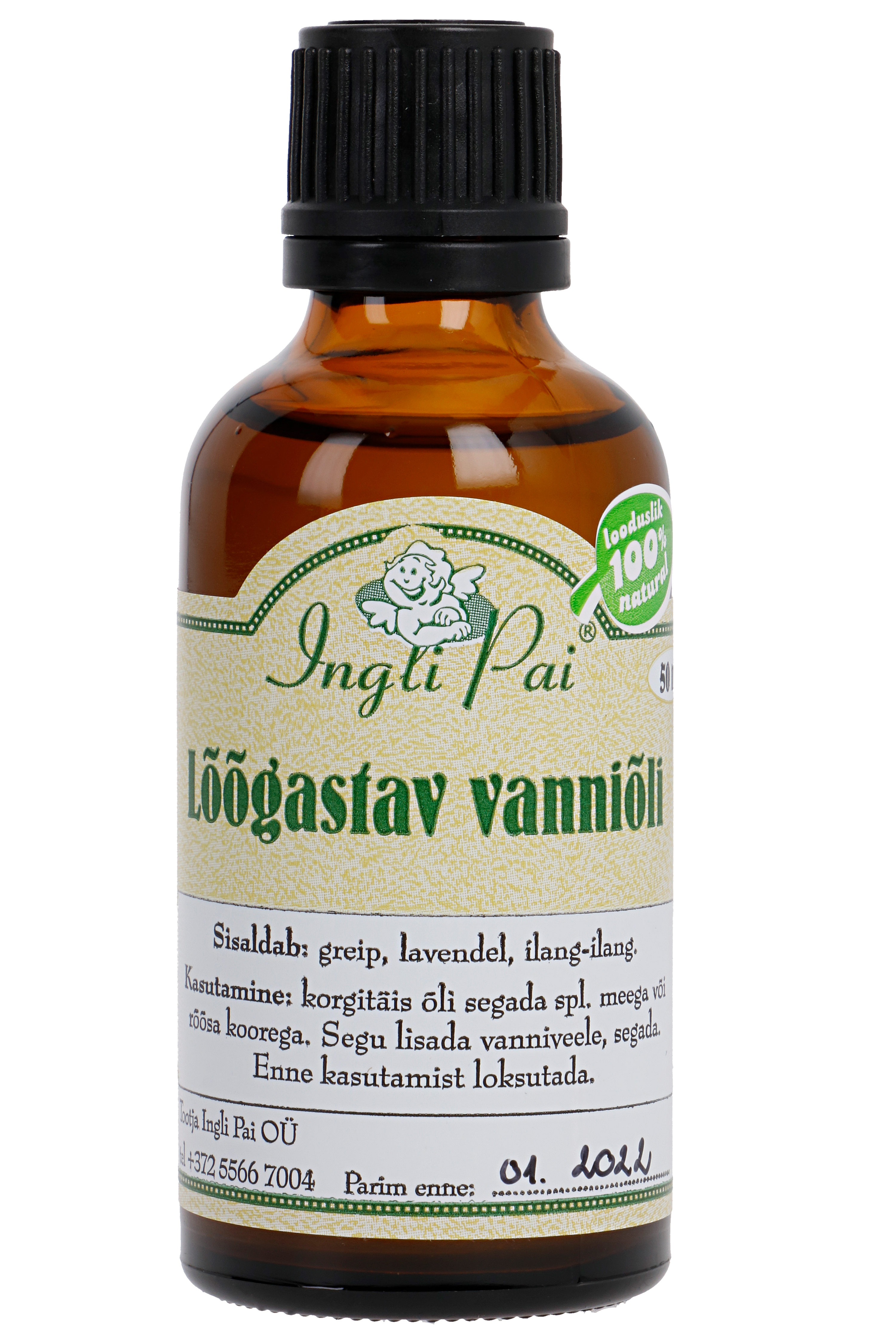Looduslik lõõgastav vanniõli sisaldab meeli rahustavaid, pingeid maandavaid ja organismi puhastavaid eeterlikke õlisid.