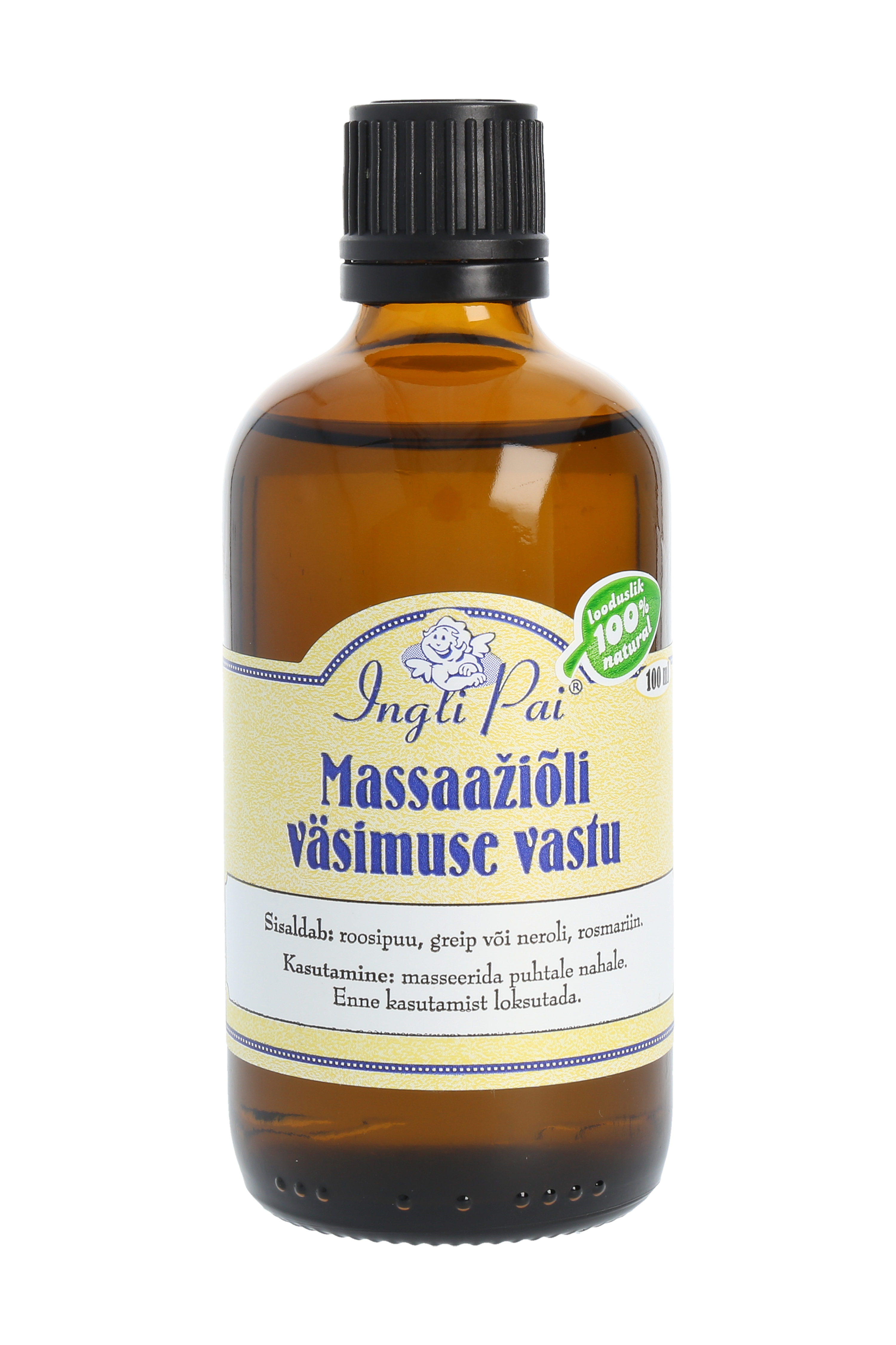 Massaažiõli väsimuse vastu sisaldab närvisüsteemi kosutavaid, elujõudu andvaid, vereringet stimuleerivaid ning organismi puhastavaid eeterlikke õlisid.
